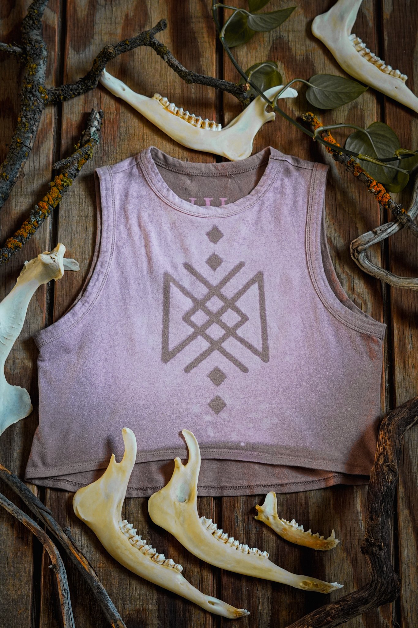 Original design printed on an upcycled ivory cream colored women's crop top. This is made as a one-of-a-kind piece. Made with a high neckline and cut off sleeveless arms. This fabric is a comfortable breathable cotton, perfect for almost any occasion.